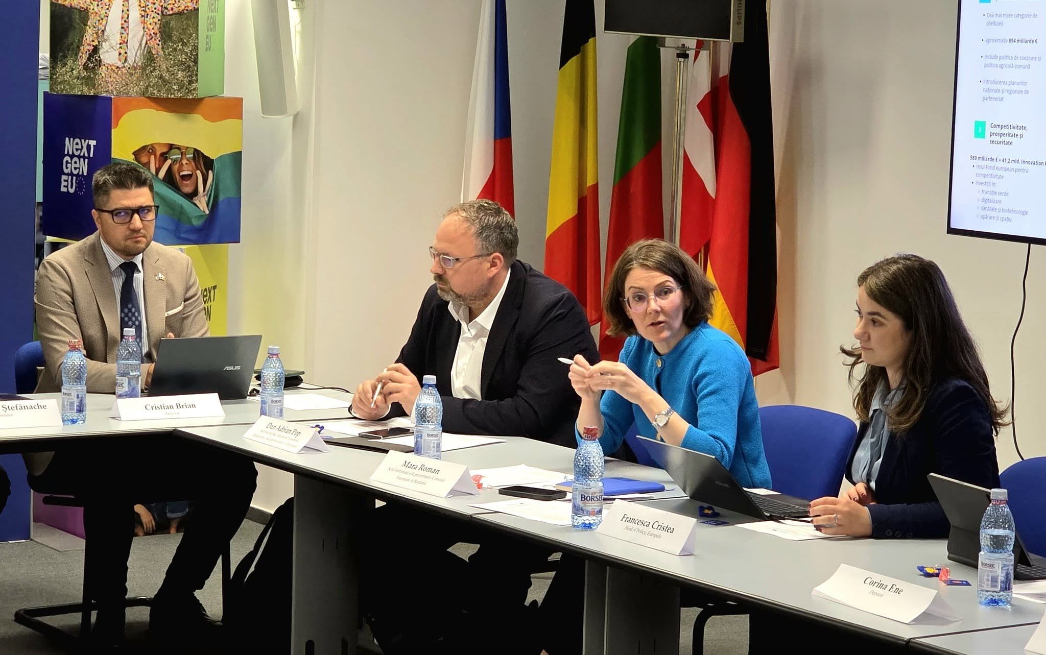 Liviu-Gabriel Mușat, directorul general al Agenției pentru Dezvoltare Regională (ADR) Sud-Muntenia, și Andreea-Mirela Tache, director în cadrul Cabinetului Directorului General, au participat astăzi, în calitate de speakeri, la masa rotundă organizată de Europuls și G4Media la sediul Reprezentanței Comisiei Europene din București. Evenimentul, desfășurat sub egida proiectului COHERO4EU - Cohesion Heroes, a reunit oficiali ai Comisiei Europene, parlamentari, reprezentanți ai administrației publice centrale și locale, precum și experți în politici de coeziune, pentru a contura prioritățile viitorului Cadru Financiar Multianual (CFM) 2028-2034.