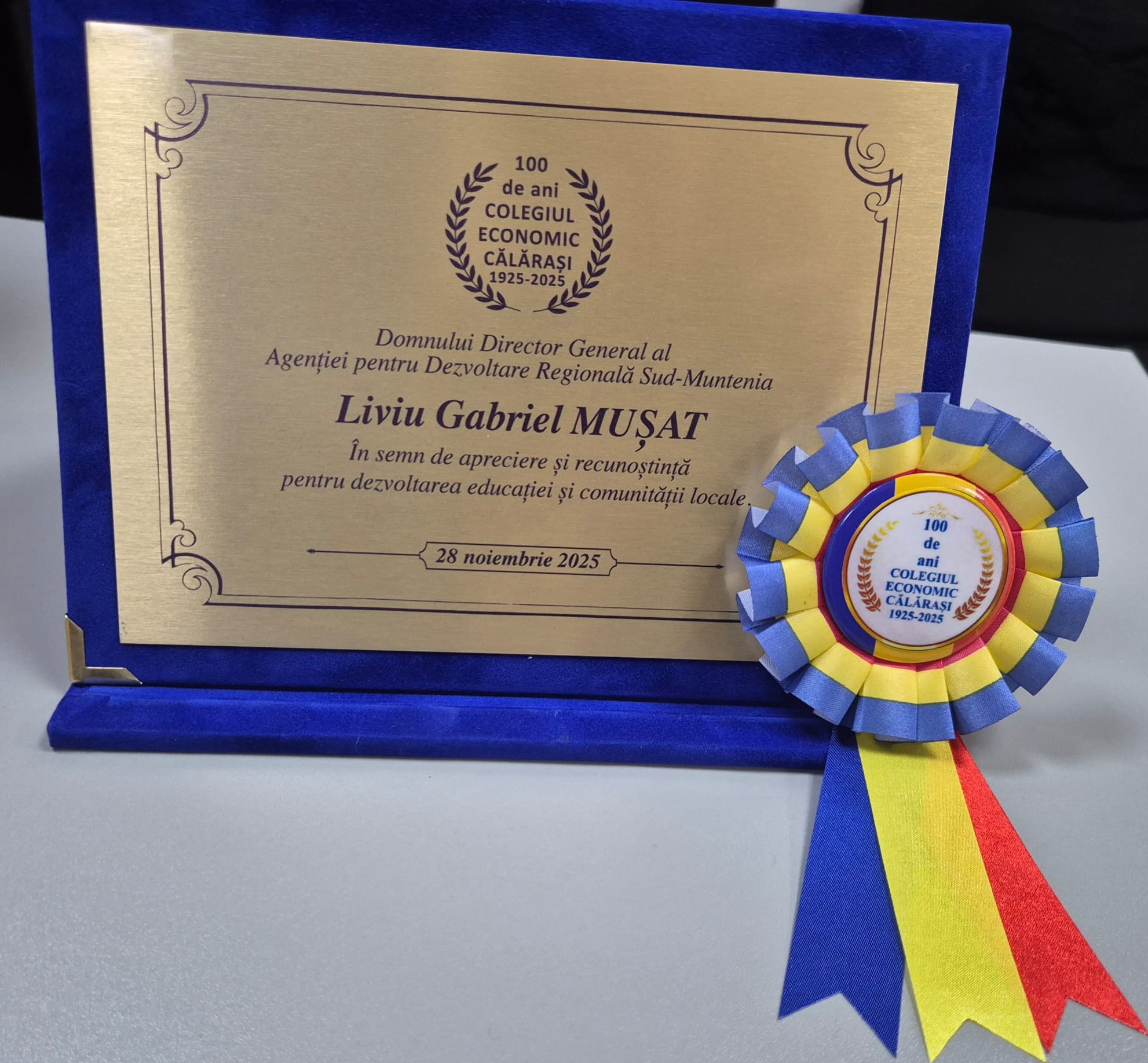 În cadrul festivităților, Andreea-Mirela Tache, directorul Cabinetului Directorului General din cadrul Agenției pentru Dezvoltare Regională Sud-Muntenia, a transmis mesajul instituției, subliniind importanța educației și a colaborării interinstituționale: „Este o onoare să particip la sărbătorirea a 100 de ani de existență a Colegiului Economic Călărași, o instituție care a format generații de profesioniști și a contribuit semnificativ la dezvoltarea comunității noastre. Prin semnarea protocolului de constituire a Consiliului Consultativ VET, reafirmăm angajamentul ADR Sud-Muntenia de a sprijini educația și de a consolida legătura dintre mediul educațional și cel economic.”