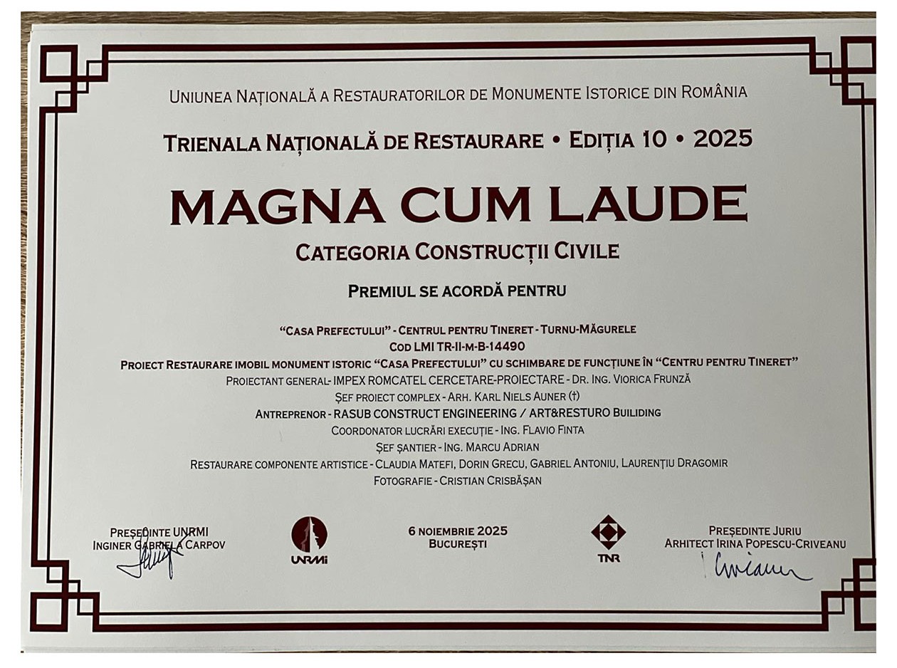 Printre proiectele laureate ale ediției, s-a remarcat în mod deosebit Casa Prefectului din Municipiul Turnu Măgurele, care a obținut Premiul „Magna cum laude” la categoria „Construcții civile”, ca recunoaștere a valorii restaurării sale exemplare și a reintegrării sale funcționale în viața comunității locale.